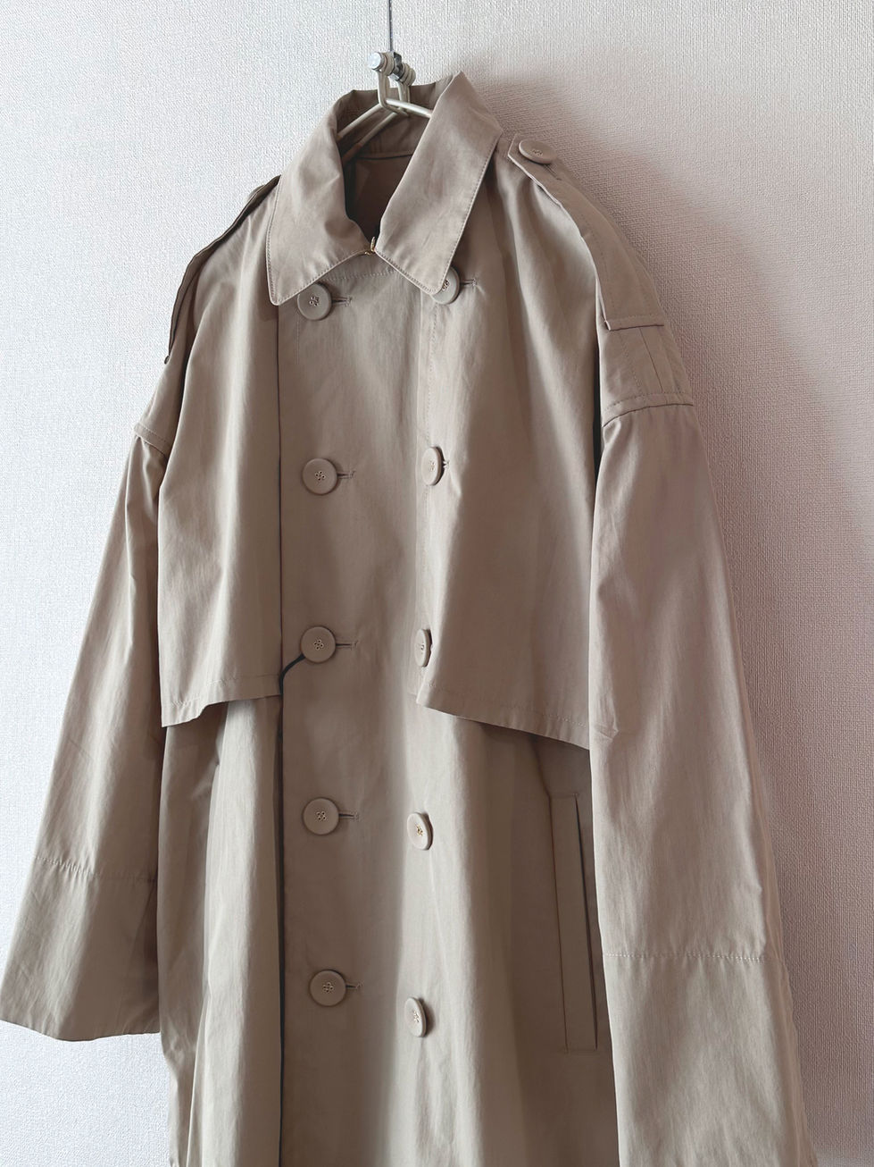 裏なしの軽いトレンチコート。ドロップショルダーのゆったりしたサイズ感で、重ね着にも対応。両サイドにスナップ留めのサイドベンツを備えたデザイン。レイヤードスタイルを楽しめます。袖口を折り返して着ることもできます。